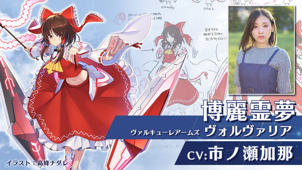 『幻想のヴァルキューレ』のキャラクター博麗霊夢の声優が市ノ瀬加那さんに決定しました!また、博麗霊夢が装備しているヴァルキューレアームズ「ヴォルヴァリア」のボイスも担当。ボイスを追加するフルリリースの際には、博麗霊夢とヴァルヴァリアの掛け合いだけではなく、その演じ分けにもご注目ください!他のキャラクターの声優情報も今夏に予定されているフルリリースに向けて順次発表しますのでお見逃しなく!