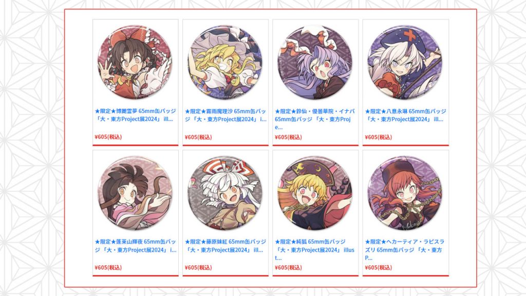・東方やおよろず商店/〈大・東方Project展 2024〉限定販売情報ページ