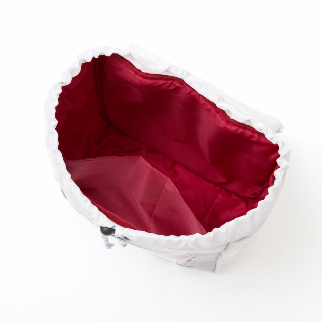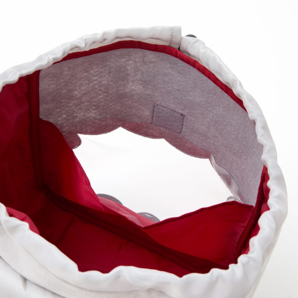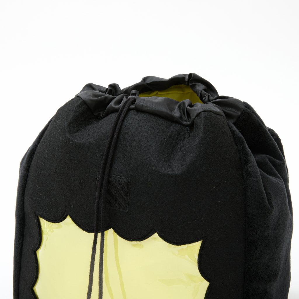 フロント部分は吹き出し型のクリア窓。お気に入りのグッズをディスプレイしながら持ち歩けます。