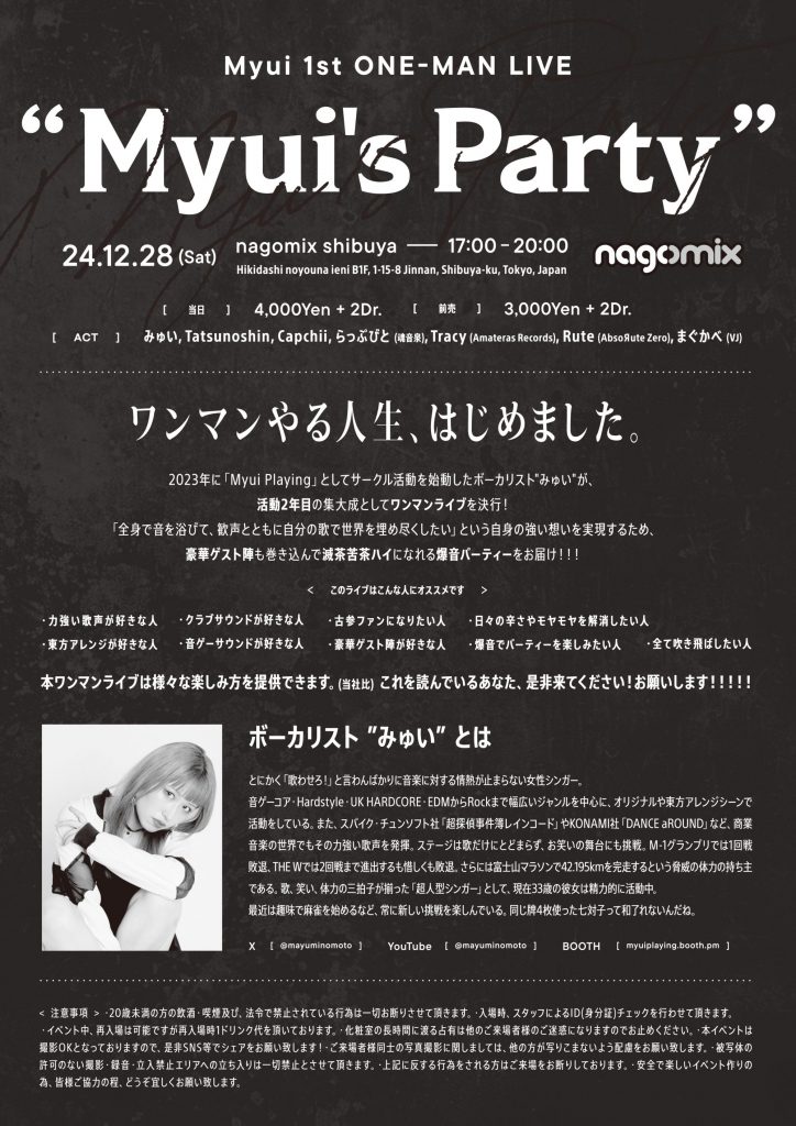 みゅい様より、ワンマンライブ「Myui’s Party」のお知らせをいただきました。