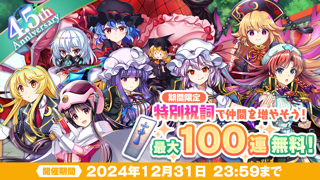 東方Project公認二次創作 スマートフォン向け弾幕RPG「東方LostWord」4.5thアニバーサリーのイベント・キャンペーンを開催!