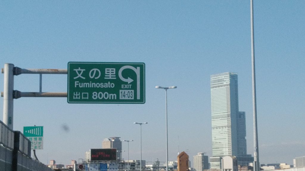 読み方は別ですが車から見ると文の里と見えます。