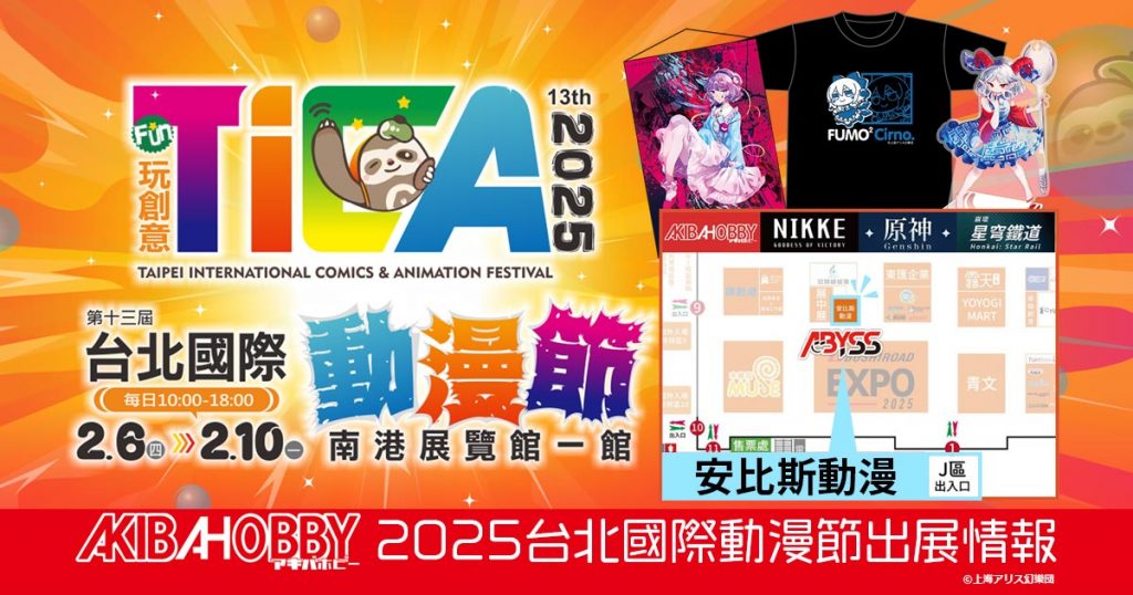 AKIBAHOBBY將會參加於2025年2月6日~2月10日在台北南港展覽館一館舉辦的[第13屆台北國際動漫節]