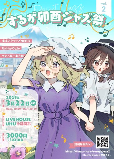 東方交楽宴様と、するが卯酉ジャズ祭様より、静岡例大祭前日に開催される音楽イベントのお知らせをいただきました。
