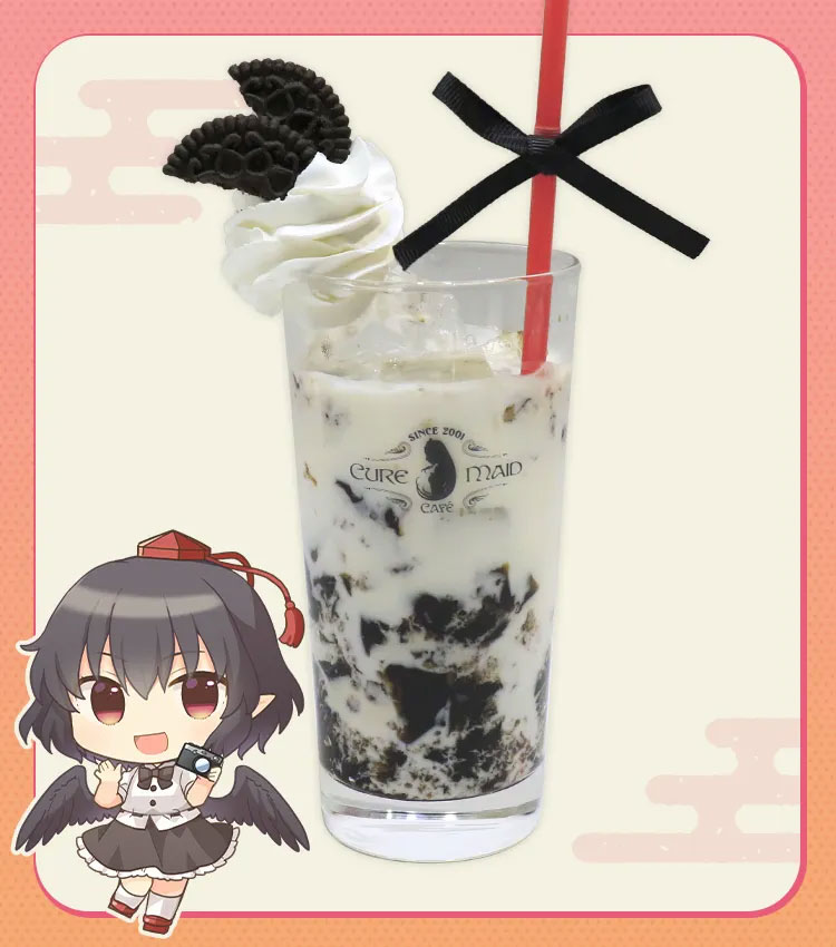 [魔法の森のフルーツキャンディティー+レモンスカッシュ+ホイップクリーム+星チョコレート+チャービル]〇射命丸文[鴉天狗の珈琲ジェリーミルク]