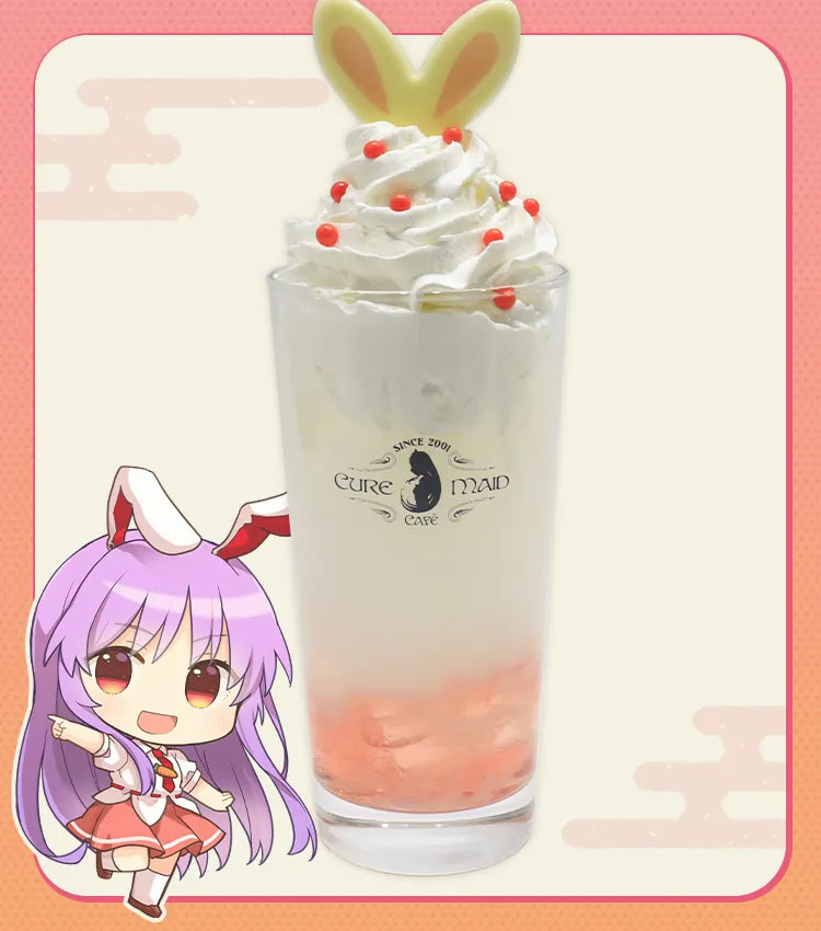 [こんぶ茶+桜の塩漬け+ミニ三色団子(+ホイップクリーム※テイクアウト時)※ホットドリンク]〇鈴仙・優曇華院・イナバ[ムーンラビットの春めく桃色カルピス~赤い瞳~]