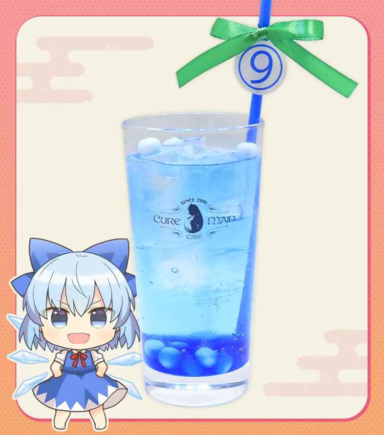 氷・冷気を操る妖精のチルノらしく、ひんやりした見た目の青いライチシロップにソーダでグラデーションを作り、