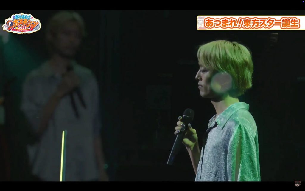 本企画はCSP利用中のクリエイターを対象にカラオケ@DAMの東方アレンジ楽曲を歌唱して投稿するコンテストで、CSP最優秀イイね!賞に「新島らんぷ」さんが歌唱した「人間が大好きなこわれた妖怪の唄」の動画(https://youtu.be/IuIVejLlw0Q?si=hINHFxH6BivhsAeq)が選ばれ、「あつまれ!東方ステーション2025」のステージに出演、投稿した楽曲の歌唱披露と、記念盾が授与がされました。