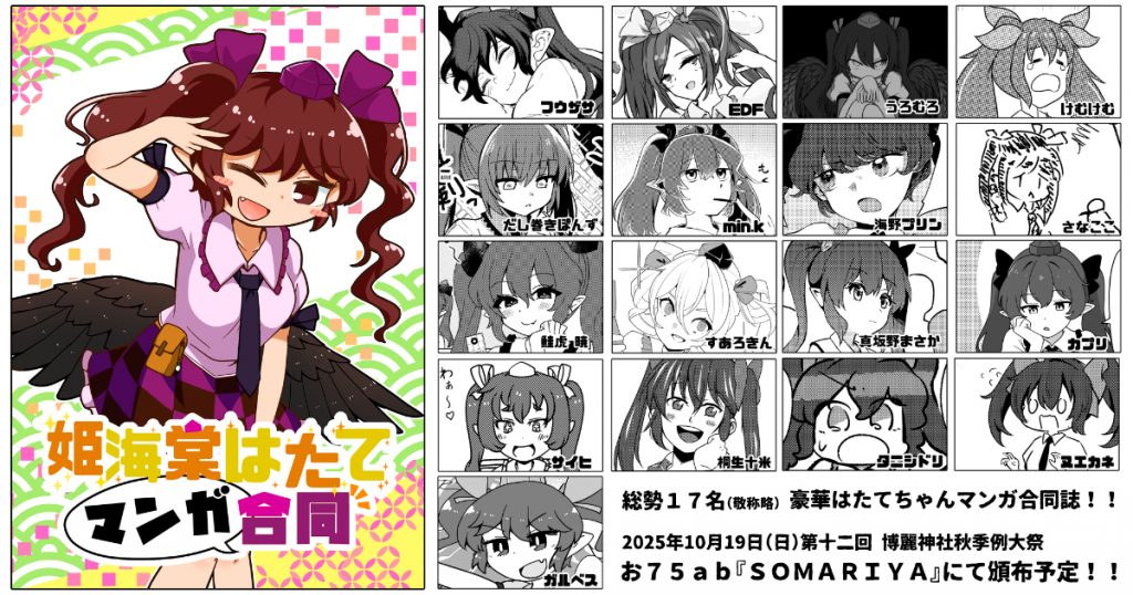 SOMARIYA様より、『姫海棠はたてマンガ合同』のお知らせをいただきました。
