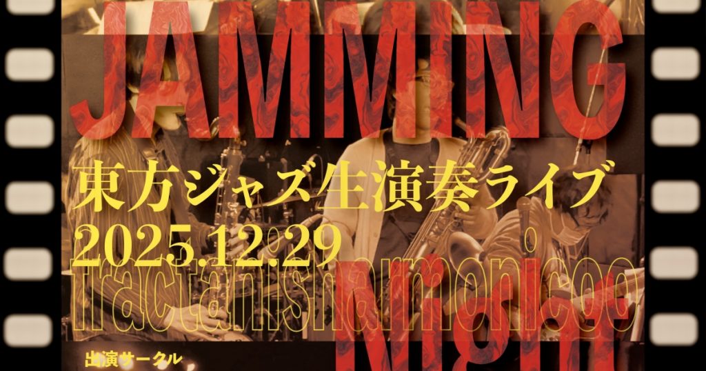 2025年12月29日(月曜)の夜に、東方ジャズアレンジサークルが3サークル出演するライブ「Far East JAMMING Night 12.5」を開催します。