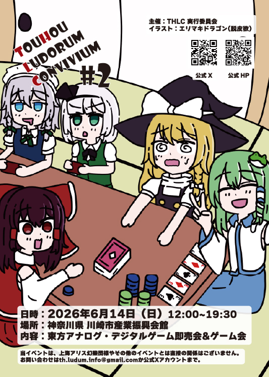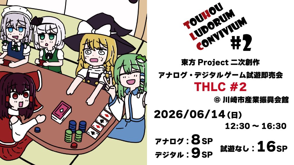 2026年6月14日(日)に開催の東方アナログ・デジタルゲームオンリーイベント「THLC #2(ティーエイチエルシー パート2)」のサークル二次募集を受付中です!