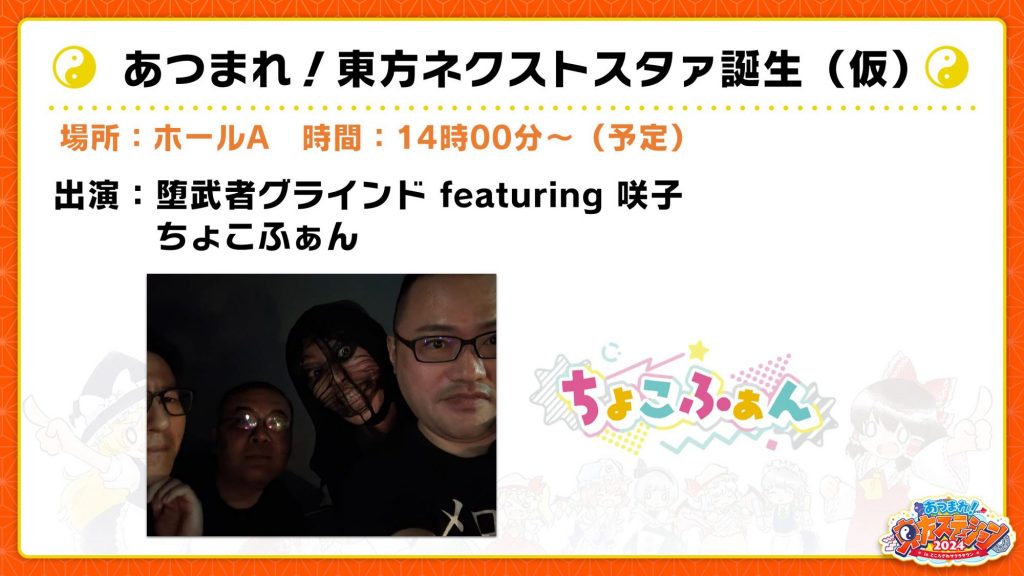 11時~13時にカラオケステージで歌った方の中からお二人、「あつまれ!東方ネクストスタァ(仮)」のステージにお立ちいただきます!