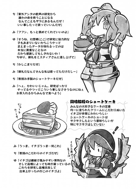 例大祭が静岡なので名産のイチゴをテーマにお話しを描きました。毎度ながらニコニコ動画にあげている「夜雀食堂」や「過去の本」は知らなくても楽しめる作りにしております。