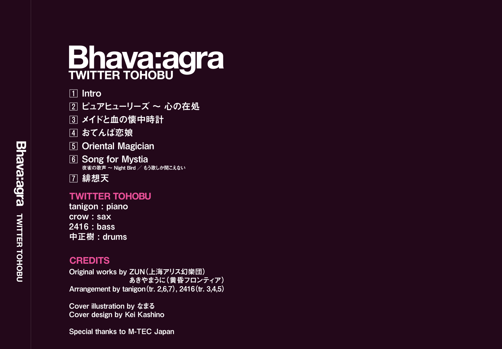 東方JAZZといえば!のついったー東方部です! 15枚目のアルバムはこれまでの中で最高傑作!!やったった!と思ったのに例大祭が…ううっ。ぜひぜひ聴いてくださいー!! ライブなども精力的に活動してます!