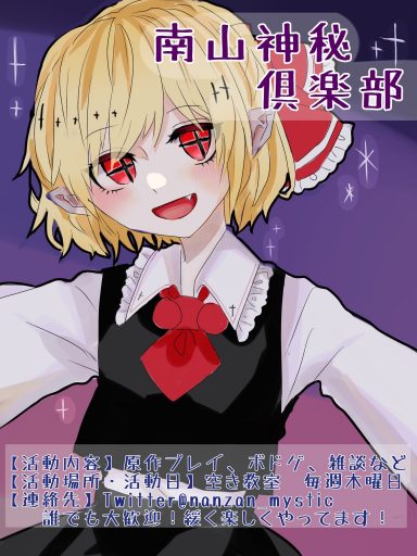 2024年4月に設立したばかりの出来立てほやほやのサークルです。東方に少しでも興味がおありならお気軽にDMをお送りください!在校生の方も大歓迎です!