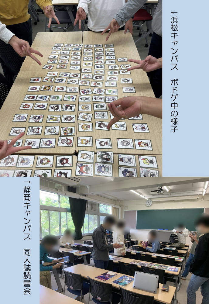 基本的にはdiscordでのボイスチャットや、毎週土曜日の対面活動にて、東方原作などのゲーム、ボードゲームで遊んだり、絵を描くなどの活動を行っています。また、部員で合同の部誌を作成し、例大祭や紅楼夢などのイベントにサークル参加、秋の明學祭(文化祭)に東方アレンジの音楽サークルさんをお招きし、ライブを行うなどの活動も行っています。以前に取材も受けさせて頂きました。https://touhougarakuta.com/article/meigakusai/新入部員の加入方法: