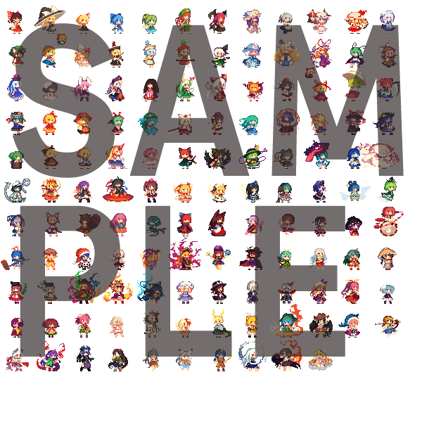 こちらのドットイラストは、『幻想郷萃夜祭』を制作しているお茶煮さんより東方ゲームジャムのために特別にご提供頂いた、「Win版以降の東方キャラ全員分」をまとめた素材集です。おまけとして「システムUIに使えるドット」「ゆっくりのアニメーション」も入っています。