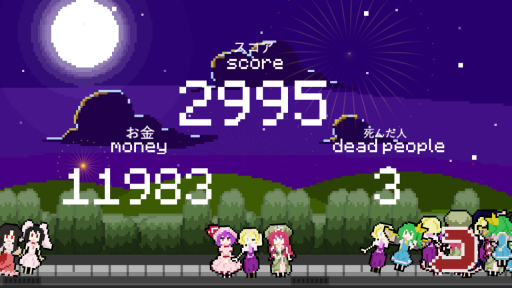 霊夢と魔理沙を相手にしたときの妖怪の気持ちになれるゲームでした。演出も美しい、この期間で作ったとは思えないゲームでした。