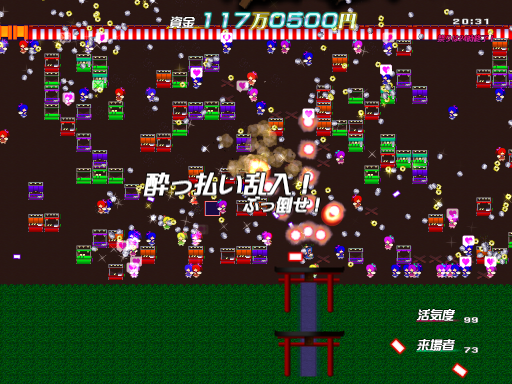 すごく華のある画面と、ちょっと忙しいくらいのプレイ感が相まってとっても楽しいゲームでした! 酔っ払いにぶっ壊される感じがとっても東方感がありました。