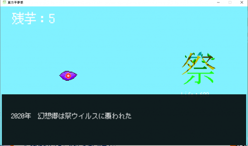おそらく東方ステーション初日の「萃夢想」で萃が、芋と読まれていたという話から着想を得てのゲームと思います。そのスピード、そしてゲームとしての手触りが小さいながらもとても良く、出落ちだけではない作品でした。