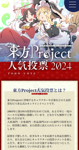 8月10日よりスタートしております「東方Project人気投票」。2024年で記念すべき20回目を迎える非公式ファンイベントです。