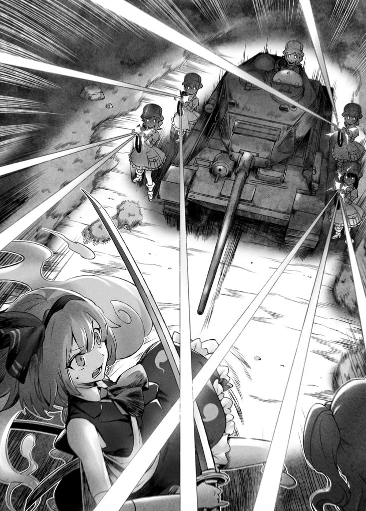 今回対峙しているT-34が、シリーズの中でもT-34-85と呼ばれる85mm主砲でなかったのは不幸中の幸いと何かに感謝すべきだろうか? とにとりは思うもすぐに脳内で否定する。