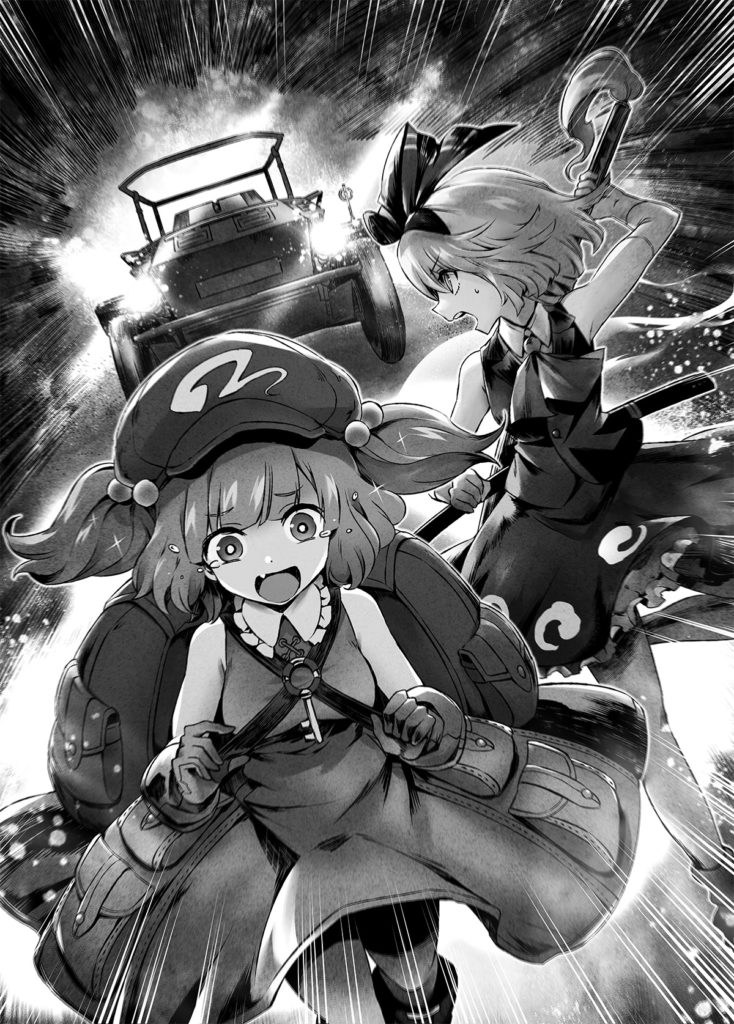 大事な部分を口にしてから「本当は武器じゃなくて兵器だし、軽装甲偵察車っていうんだけどね」と小声で続けるにとり。これは完全にエンジニアとしての自己満足からだった。